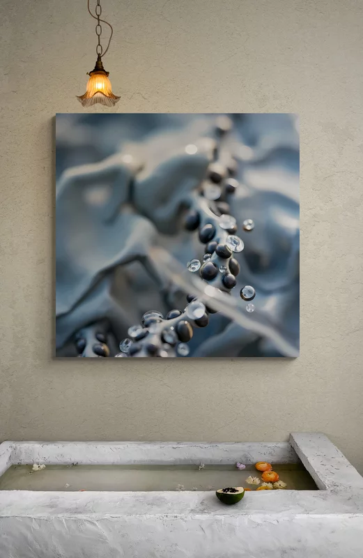 Wasserperlen ist ein digitales Kunstwerk auf fotografischer Basis, das die zarte Schönheit einzelner Wassertropfen einfängt. Die Perlen liegen oder schweben auf einer Oberfläche und reflektieren Licht in feinen Glanzpunkten. Klare Formen, sanfte Transparenz und reduzierte Farben erzeugen eine ruhige, beinahe meditative Stimmung. Durch dezente digitale Bearbeitung werden Details und Tiefe hervorgehoben. Wasserperlen steht für Reinheit, Vergänglichkeit und die stille Eleganz natürlicher Formen.